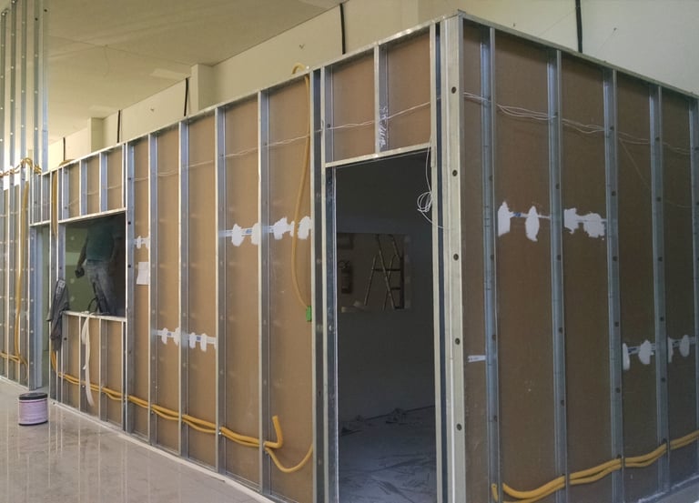 Divisórias práticas e modernas em drywall, otimizando espaços com estilo e eficiência.